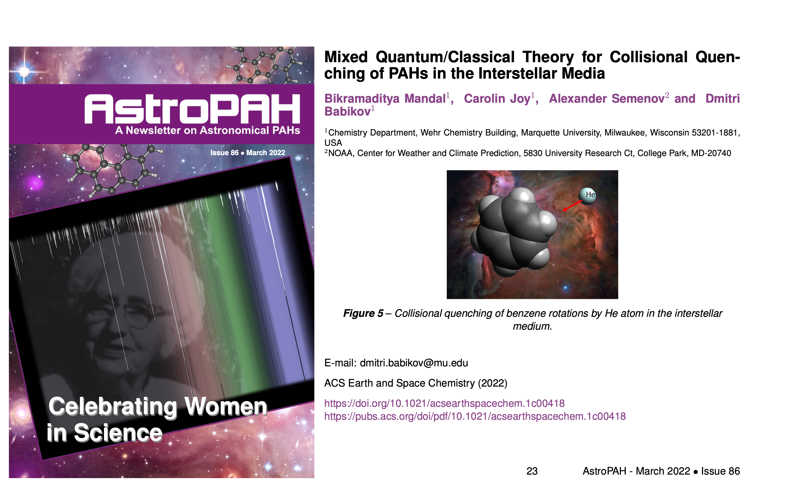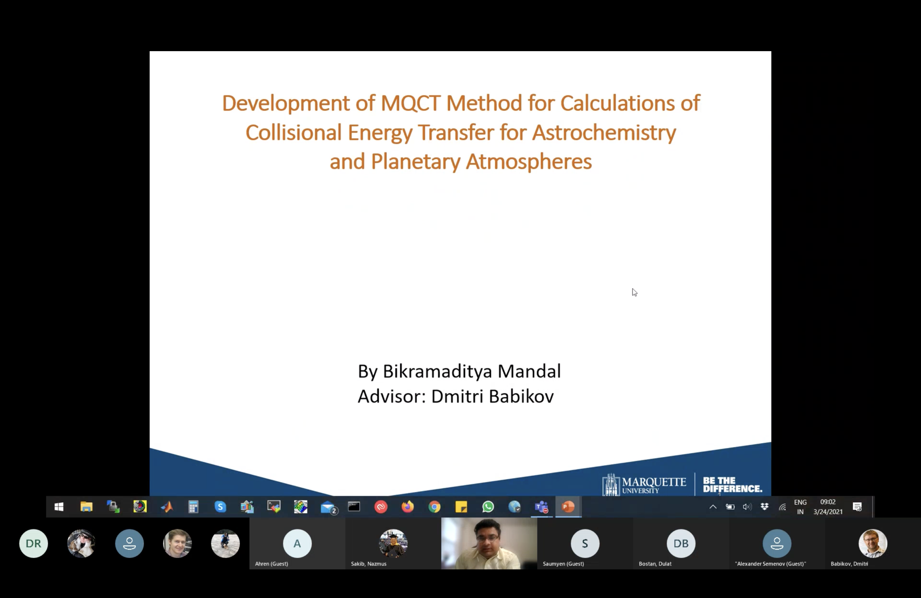 Prior to my tenure at UNLV, I worked as a Postdoctoral Scholar with Prof. Dmitri Babikov at Marquette University from May 2021 - December 2022. My primary research was to develop mixed quantum/classical theory (MQCT) to study inelastic scateering of molecules. A more detailed description of my projects during that period is provided in the Research Section.