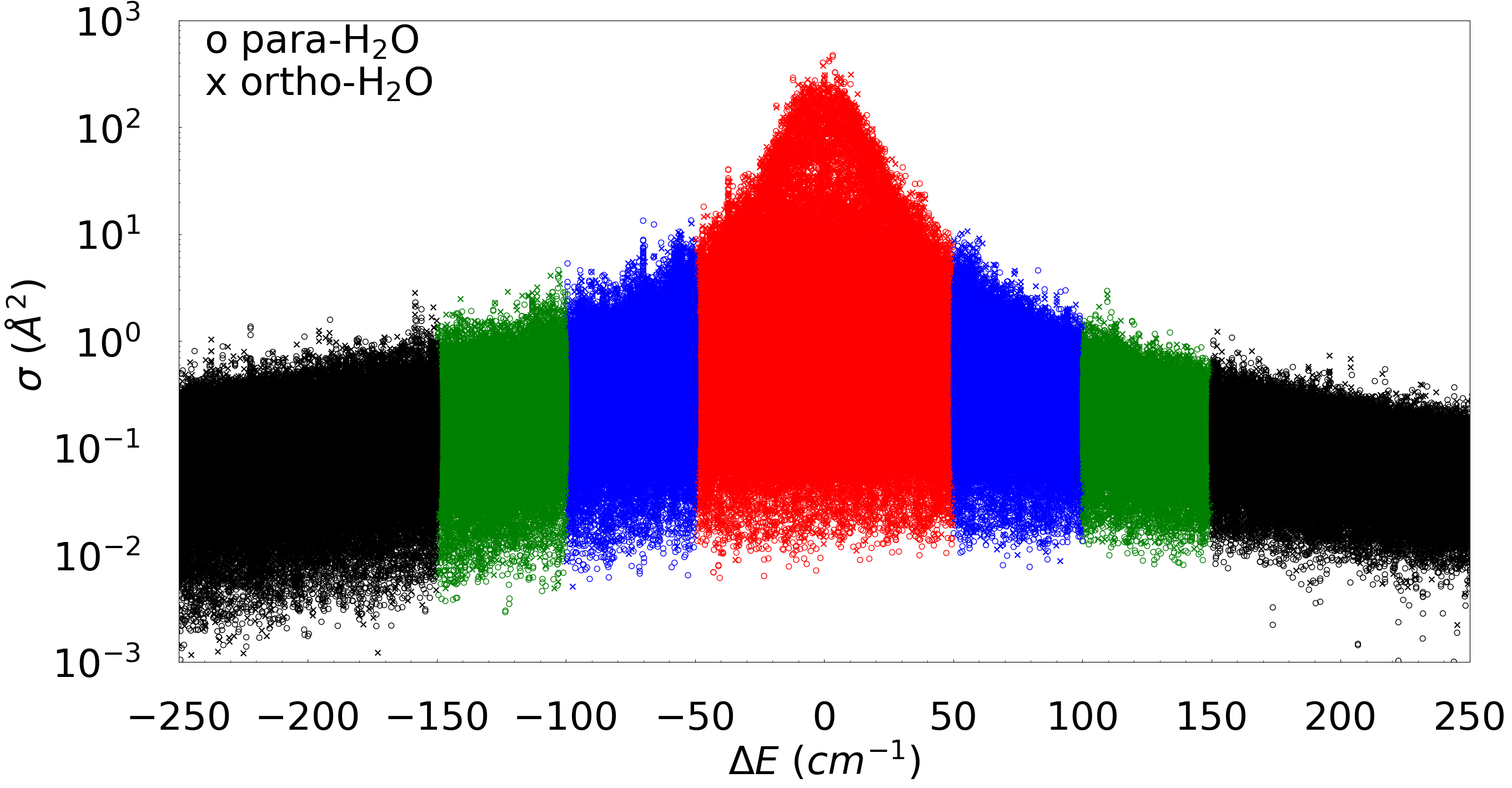 In general, the idea is that the training data set consists of all cross section values for which the energy difference of the transition lies within a certain range, and another additional smaller range of energy difference would serve as a validation data set. Finally, all the cross sections for the remaining transitions are taken as the test data set. In this work, multiple values of Ecut is tested for our MLP modelling to optimize the computational efficiency and accuracy of our MLP model. Each of our data set has thirteen features for our multilayer perceptron (MLP) modeling: rotational quantum numbers of initial and final states of the first water molecule (j1 ka1 kc1, j'1 k'a1 k'c1), and the second water molecule (j2 ka2 kc2, j'2 k'a2 k'c2), and energy difference between initial and final states of the molecular system, ΔE.